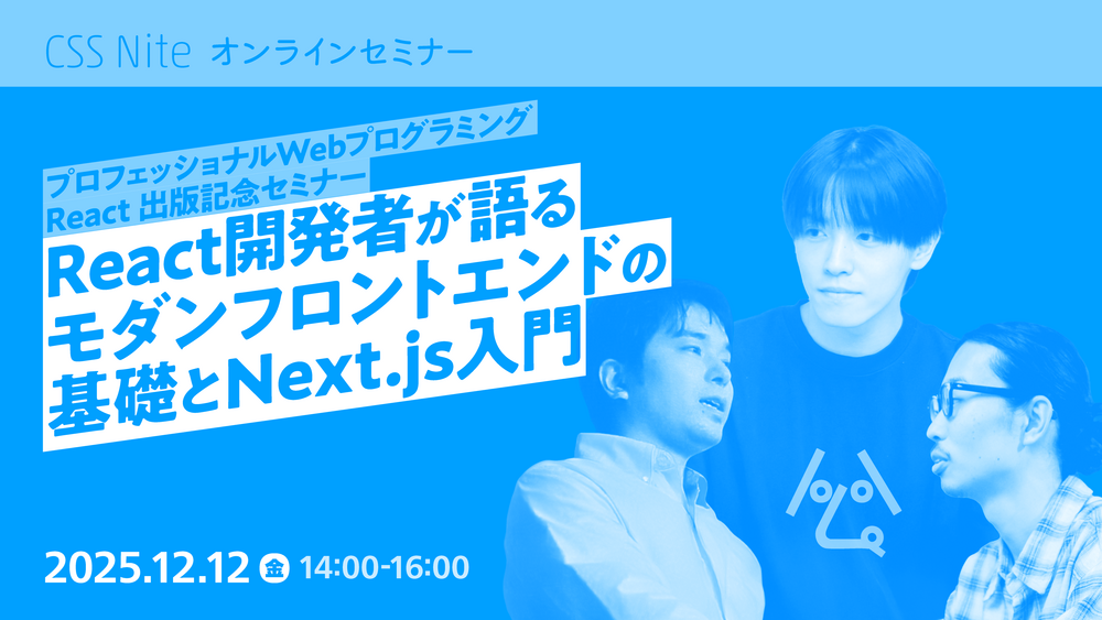 2025年12月12日に行われるCSS Niteのオンラインイベント「React開発者が語るモダンフロントエンドの基礎とNext.js入門 」に西畑が出演いたします。